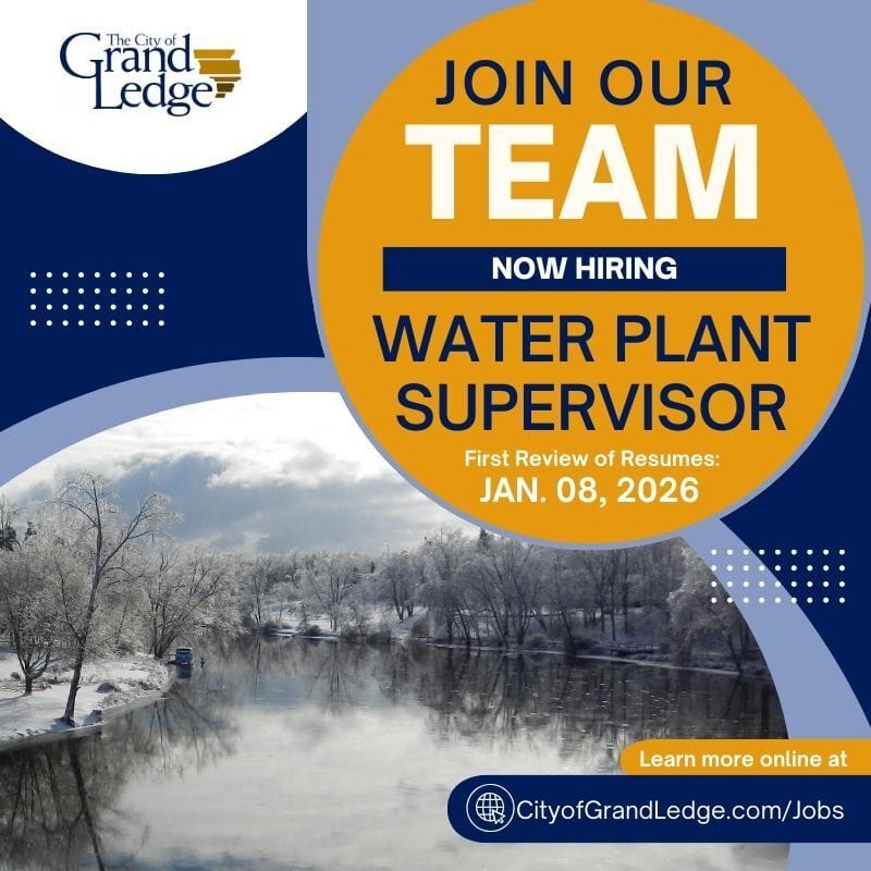 The City of Grand Ledge is seeking a Water Plant Supervisor to join its Public Services team.